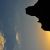 Thistles in the near foreground, a rock structure near Monument Valley in the background.