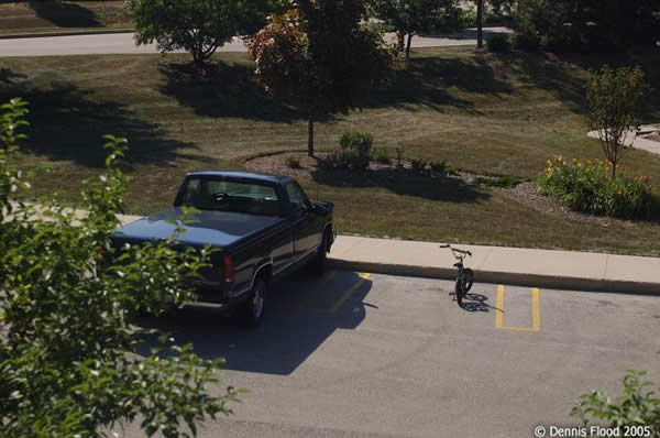 You know it's a tough day at the office when even the little guys have to park their bikes in the parking lot. Hopefully he was at least able to take a break to go and ride around.